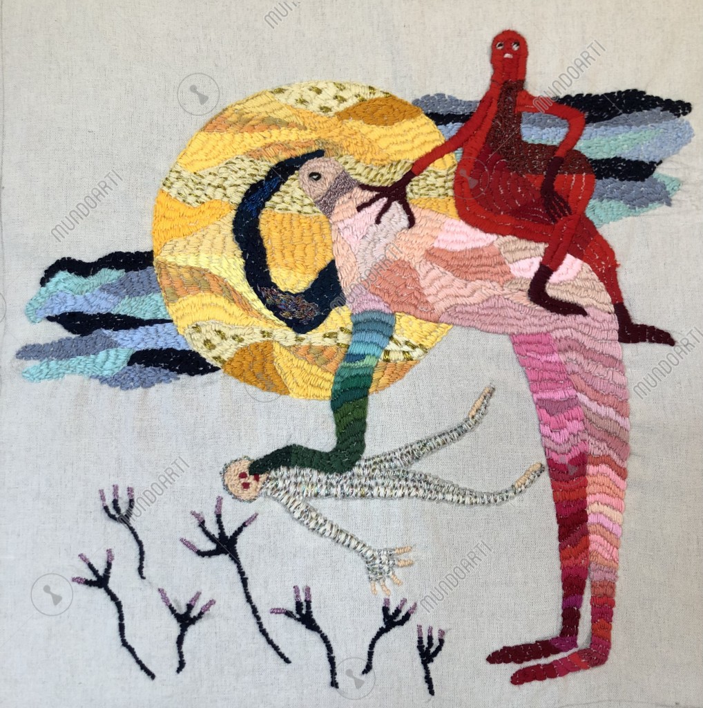 What does Evolution mean? Who rules, who is eaten? Who has power? Who is above all? Is there an answer at all? My stitching transforms these existential questions into a visual meditation, weaving contemplation and beauty into every thread. I create the work Evolucion with needle and thread, using countless stitches over time. Evolucion celebrates SLOW ART , inviting us to pause, reflect and appreciate the beauty and fragility of the world around us.