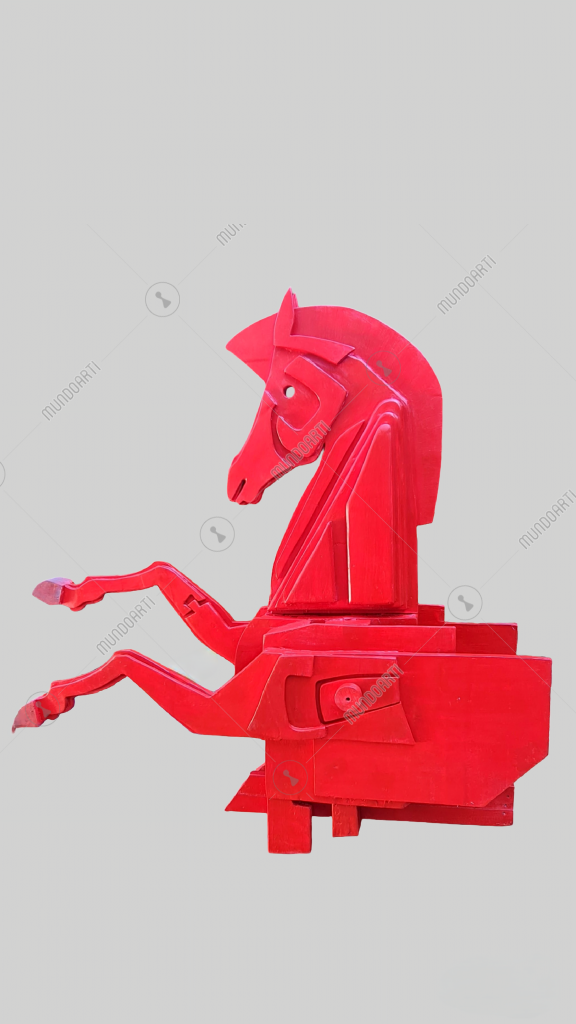 En un periodo donde no dejan de proliferar numerosos incendios, en su mayoría y desgraciadamente intencionados, este caballo guerrero simboliza la reacción de la naturaleza ante tanta crueldad humana, recopilando en una misma pieza uno de los animales más bellos de nuestro ecosistema, con ese color rojo intenso del fuego que lo arrasa todo.
