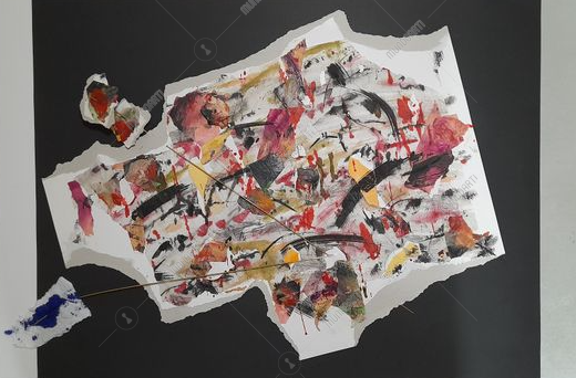 Percepció del caos , I un petit bri d' esperança que destaca perbla diferència de color( blau) sobre la barreja de colors que escenifiquen el caos, en peces de diversos papers del collage.