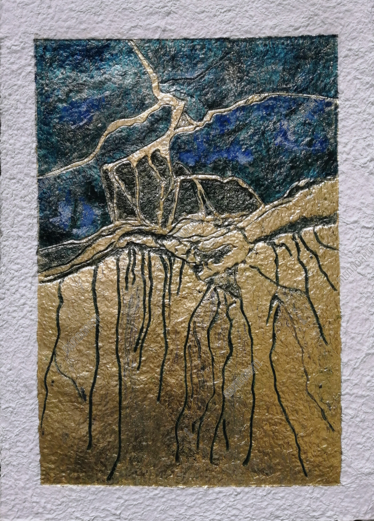 Tecnica sperimentale di incisione su foglia d'oro e carta fabbricata dall'autore