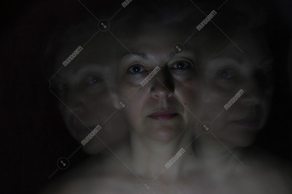 El efecto de triplicación crea una atmósfera claustrofóbica, La mujer esta atrapada bajo el peso de "la carga invisible" . Enfatizo la mirada fija y contenida.