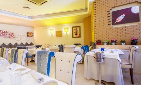 Elegante y luminoso salón con toques desenfadados donde preparan menús degustación gourmet de mercado.