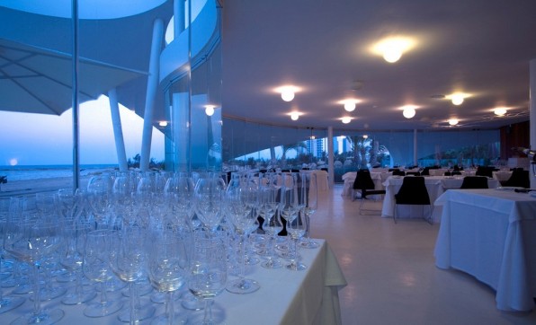 Sushi bar y recetas mediterráneas en un elegante espacio con varias instalaciones al aire libre y en la playa.