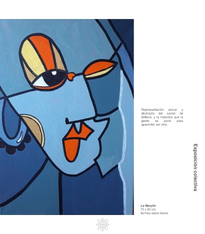 Representación actual y abstracta del canon de belleza, y la máscara que la gente se pone para aparentar ser otra. 21 Exposición colectiva 20 - La Marylin 70 x 50 cm Acrílico sobre lienzo