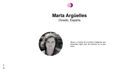 Marta Argüelles Oviedo, España “Busco a través de la pintura imágenes que transmitan algún tipo de emoción en el que mirar”. 47 46 -