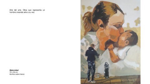 Arte del arte. Obra que representa un hombre creando arte a su vez. Maternidad 70 x 50 cm Acrílico sobre lienzo