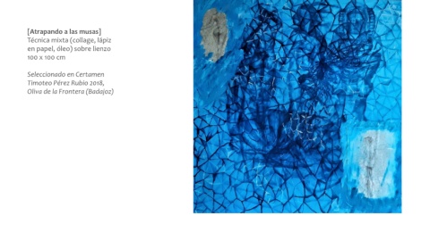 [Atrapando a las musas] Técnica mixta (collage, lápiz en papel, óleo) sobre lienzo 100 x 100 cm Seleccionado en Certamen Timoteo Pérez Rubio 2018, Oliva de la Frontera (Badajoz)