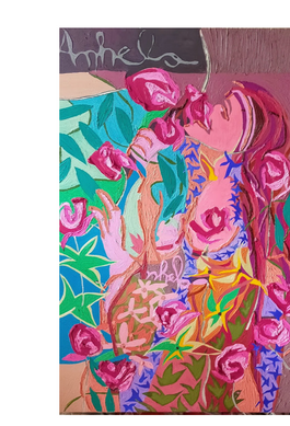 Esta obra se presenta la composición clásica de figura con fondo. Sin embargo en ella el fondo es neutro y la figura en si misma es un paisaje de resonancias de lirios creado con elementos pictóricos y con materia vegetal. La gama cromática, la composición invertida, los elementos orgánicos sitúan la obra íntimamente adyacente al Modernismo.