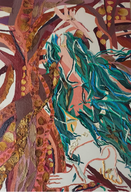 El ajardinamiento radical en soledad en la vida y en la obra. Aquí configurado gráficamente en el dibujo de la hojarasca resonando el color verde sobre todo.