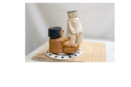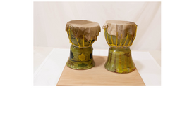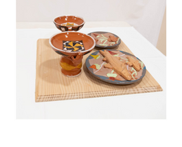 Técnica/Soporte: obra realizada en el torno de alfarero sin motor eléctrico , pintada con engobes blanco y verde . Barnizada con barniz brillante transparente