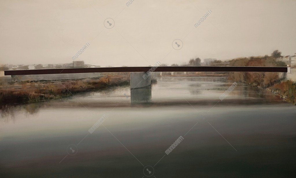 la línea que atraviesa es protagonista en diálogo con su reflejo, de marcada horizontalidad, sinónimo de estabilidad, calma y silencio. Envuelta en un halo poético y ambientación idealizada. Equilibrio espacial. Expresividad matérica en las partes orgánicas, y simplificación de planos. Detener el tiempo en una sociedad marcada por la velocidad.