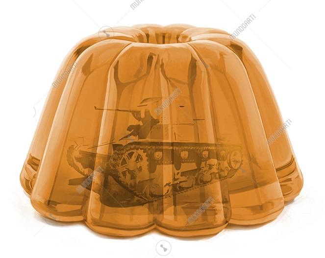 Obra inspirada en el mineral de origen sedimentario llamado jaspe. El color base hexadecimal de la gelatina es #d8852b. El tanque representado, modelo T-26 del año 1933. En el siglo XVII, Tch’ en Ki-jou enumeró en su tratado sobre Virtuosos entretenimientos las condiciones favorables para apreciar la pintura. Entre ellas apunta: “Estar rodeado de piedras raras”
