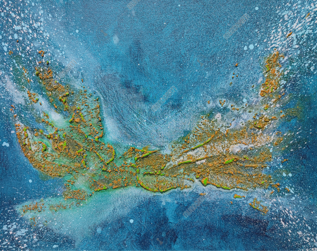 Técnica/Soporte: Pintura acrílica, spray y textura sobre lienzo