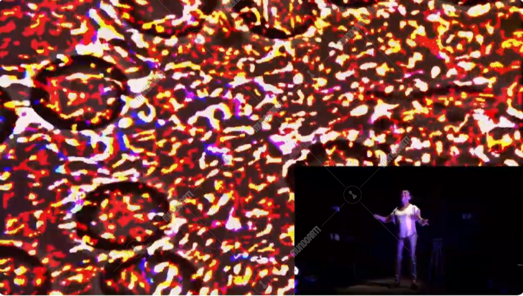 Poema 3: The starchild, el cuerpo dentro del cuerpo -Un cuerpo en otros cuerpos (cuerpos sutiles), fragmento -Opera experimental para performer, voz, video y set up -Video completo en "descripción de la exposición" (carpeta): https://www.mundoarti.com/exposiciones/EKU8206/1-cuerpos-sutiles-2025-instalacion-2-el-barro-instalacion-3-video-y-voz/