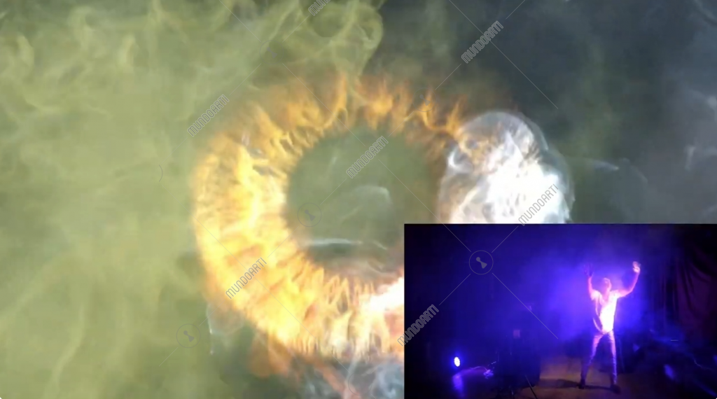 Poema 3: The starchild, humos que dibujan rostros -Un cuerpo en otros cuerpos (cuerpos sutiles), fragmento -Opera experimental para performer, voz, video y set up -Video completo en "descripción de la exposición" (carpeta): https://www.mundoarti.com/exposiciones/EKU8206/1-cuerpos-sutiles-2025-instalacion-2-el-barro-instalacion-3-video-y-voz/