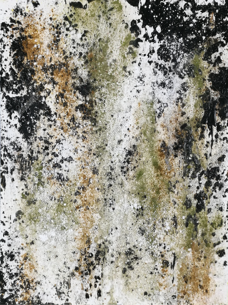 Técnica/Soporte: Técnica mixta. Carbonato cálcico, pigmentos, pintura plástica, agua, esmalte negro sobre tabla.