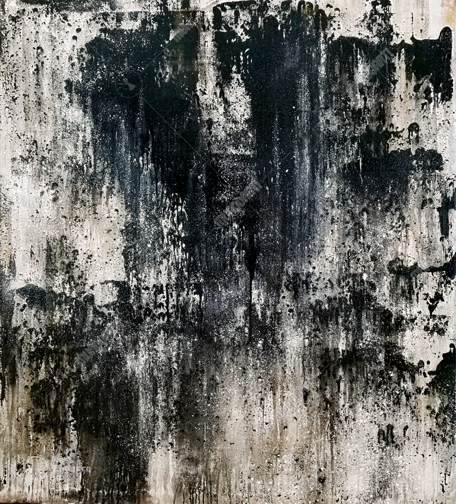 Técnica/Soporte: Técnica mixta. Carbonato cálcico, pigmentos, pintura plástica, agua, esmalte negro sobre lienzo.