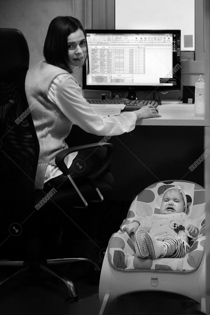 Desde la pandemia hay empresas que permiten a sus empleados trabajar on line algún día de la semana. En el caso de la imagen que nos ocupa se puede apreciar lo dificultoso que es para la mujer trabajadora concentrarse en el trabajo y en las obligaciones propias de la maternidad.
