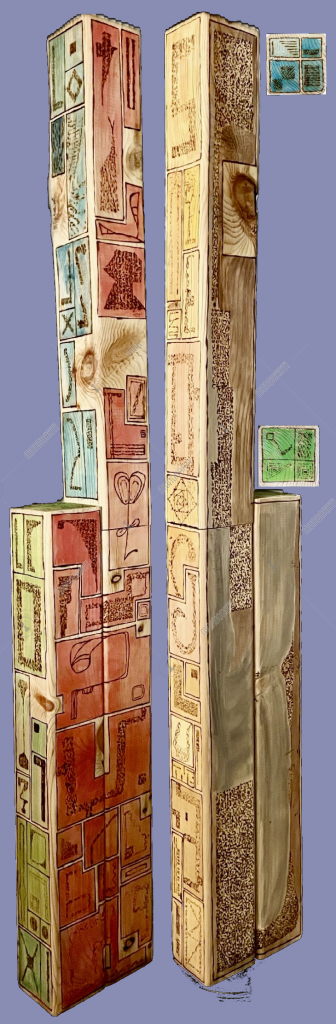 Escultura en madera Quiere reflejar un acompañamiento imaginado a los nudos de unos palos de madera