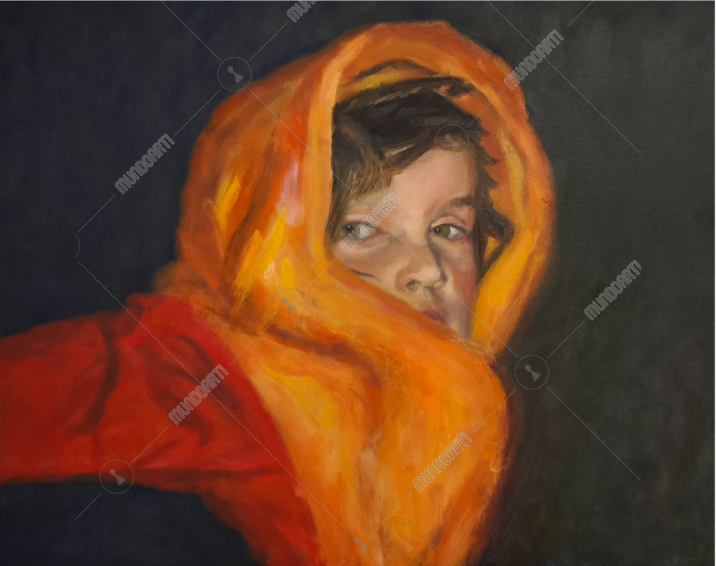 Pintura figurativa alla prima. Los ojos expresivos de Eva siempre han sido un reflejo de lo que pasa en su interior, de lo desconocido